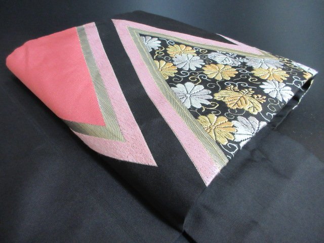 - 1円 良品 名古屋帯 正絹 和装 和服 松皮菱 花唐草 桐 六通柄 お洒落 九寸帯 長さ352cm【夢職】★
