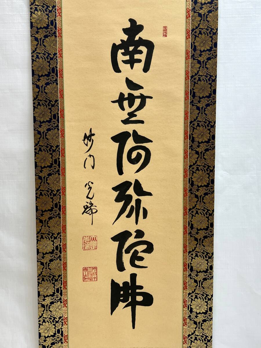 - 真作 真言宗 肉筆 久保光瑞『南無阿弥陀佛』六字名号 掛軸 幅545×高さ1885mm 高野山真言宗 書 紙本 B