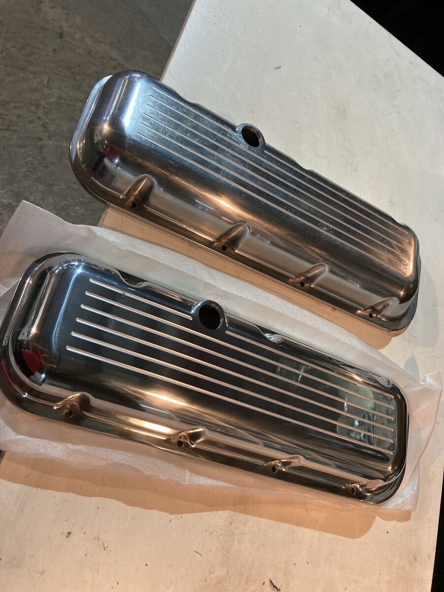 - シボレー 454 502 ビッグブロック 鏡面アルミ ヘッドカバー タペットカバー マークルーザー 未使用 片方若干難アリ