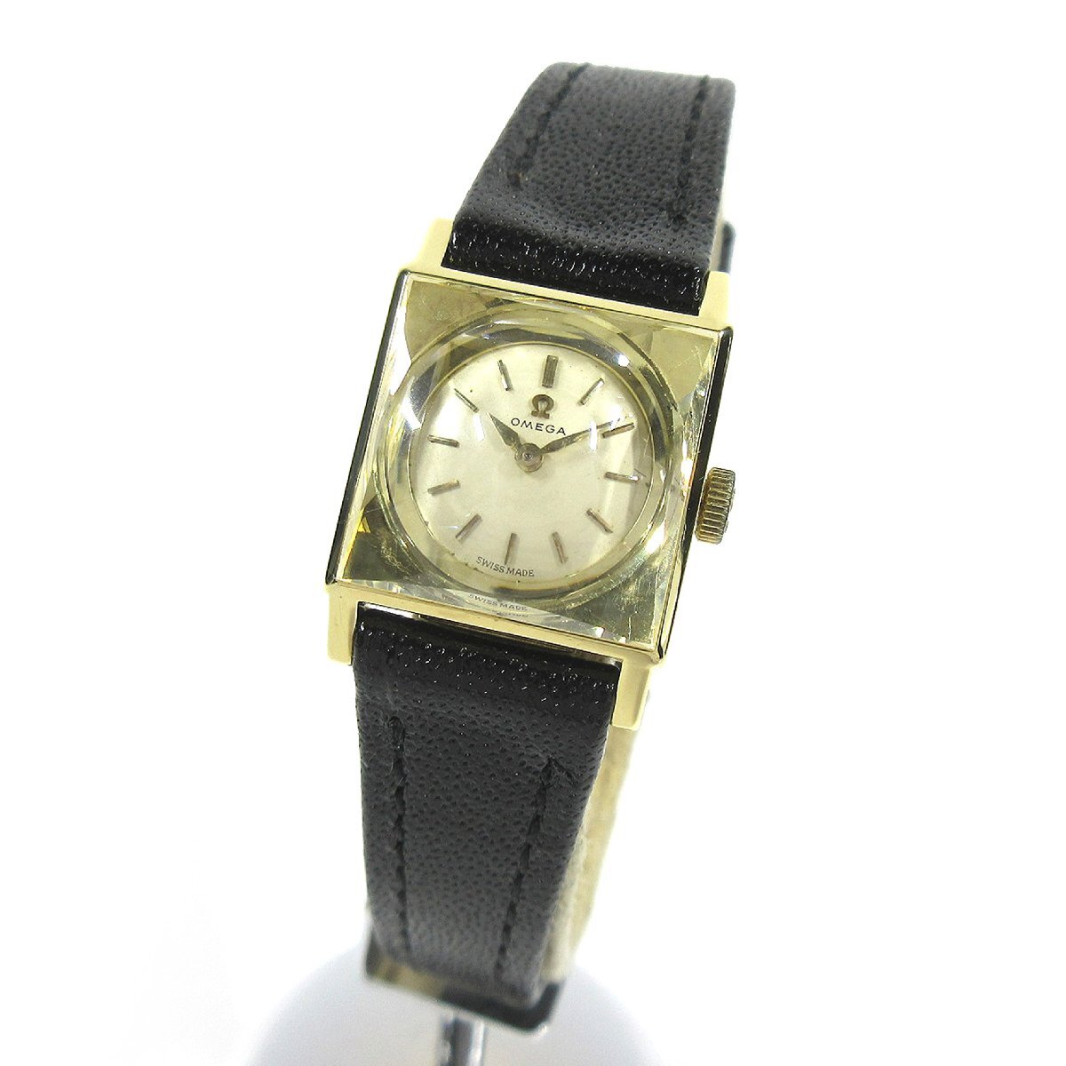> オメガ 1961年 ヴィンテージ 10523-61 ノンネーム アイボリー文字盤 17mm スクエアケース レディース 手巻 時計 K18YG A224