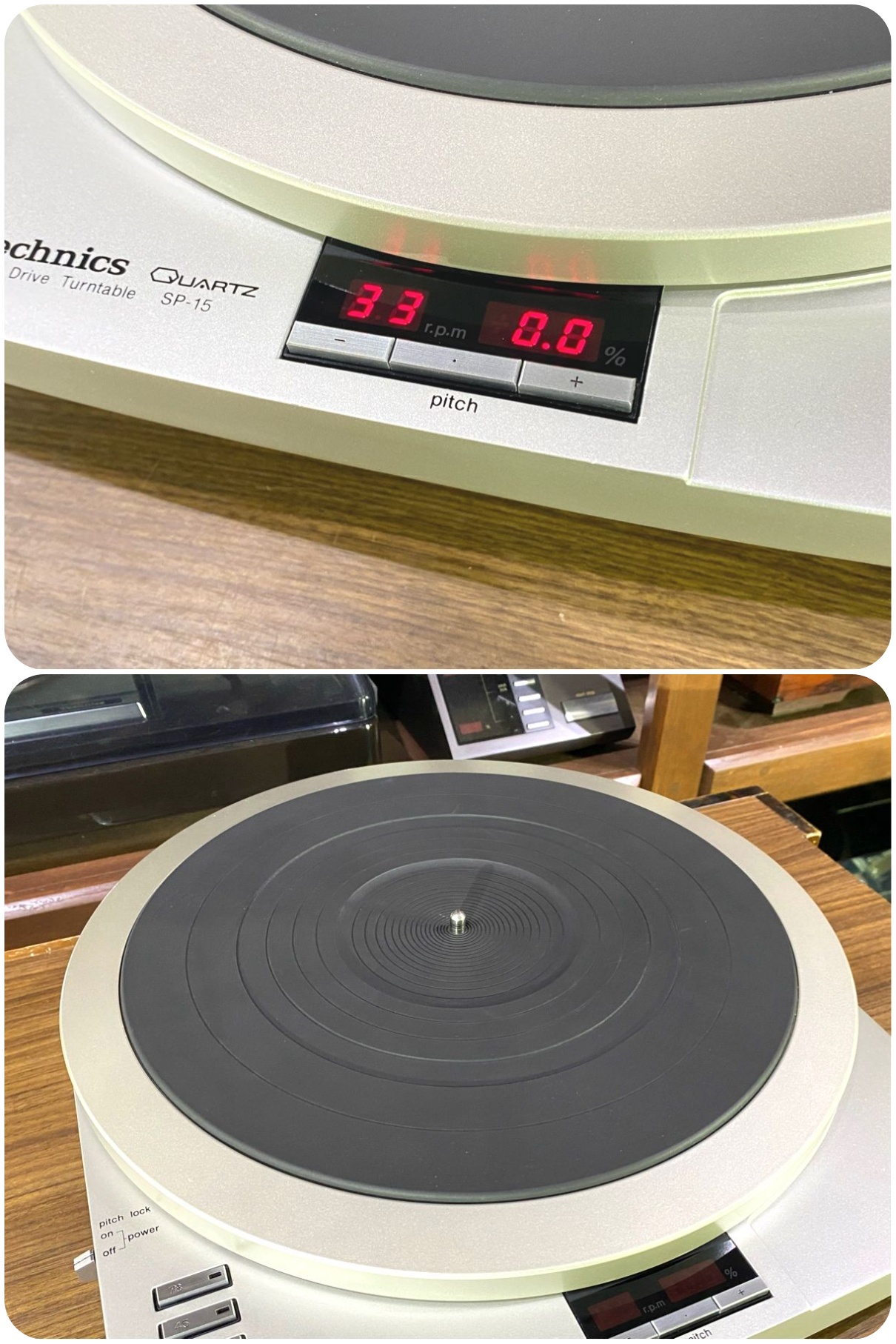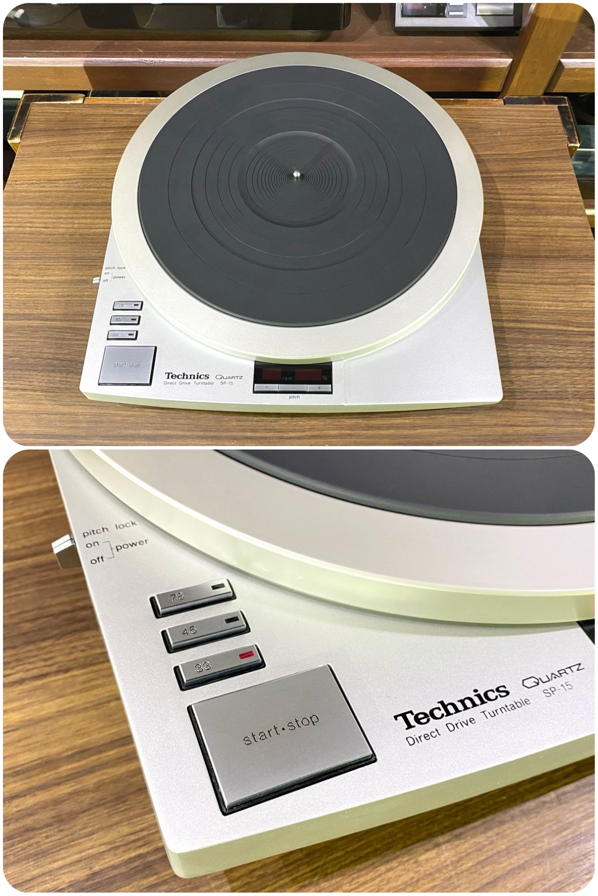 Technics SP-15 ターンテーブル 取説/固定ネジ付属 当社メンテ/調整済品クォーツシンセサイザ方式ダイレクトドライブターンテーブルです。