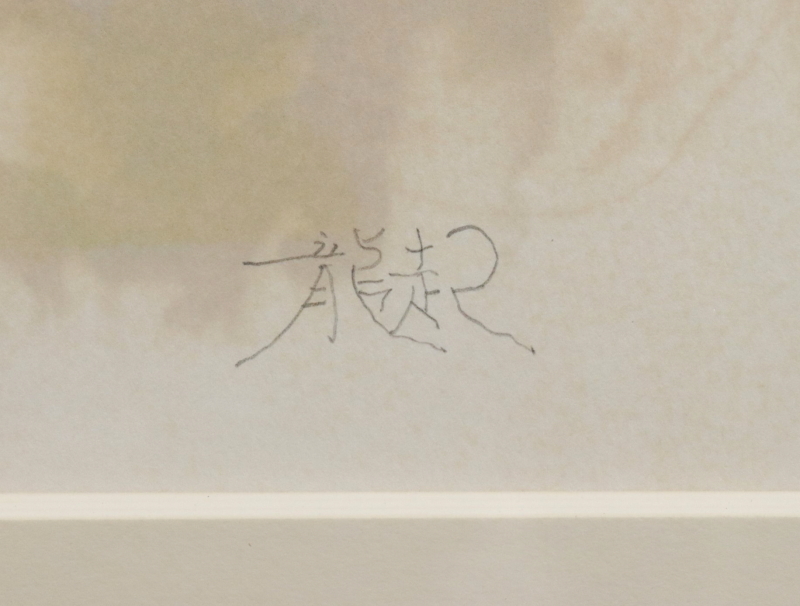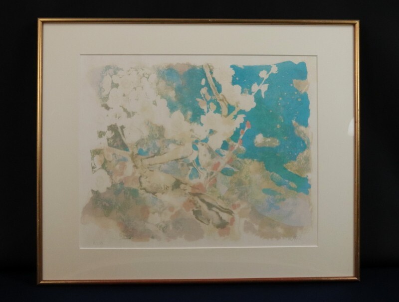 - 10885■【真作】市野龍起 花鳥図 リトグラフ 作者保存版 直筆サイン 愛知の人 川端龍子に師事 額装
