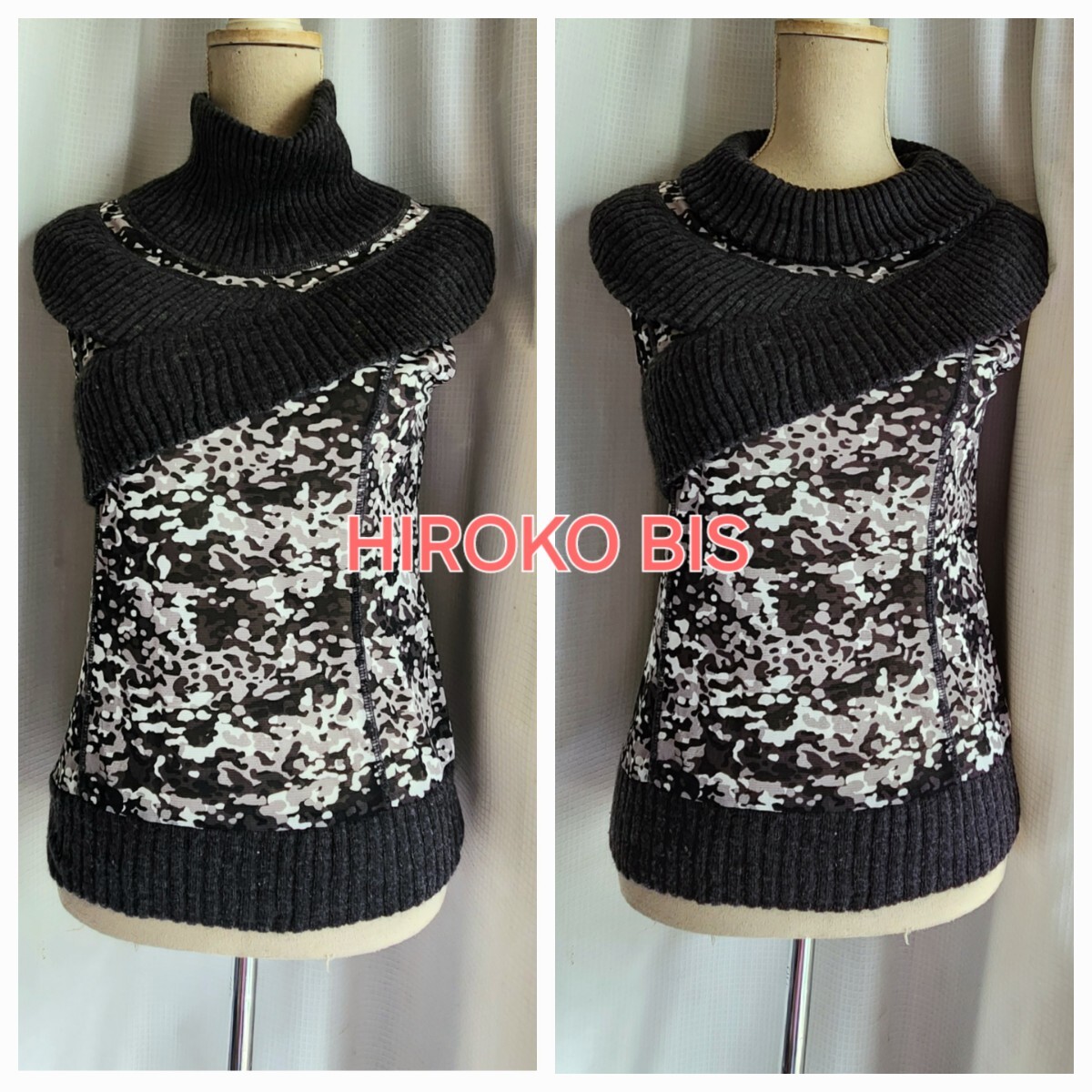 - 未使用レベル HIROKO KOSHINO ニット+メッシュ ベスト トップス セーター ノースリーブ