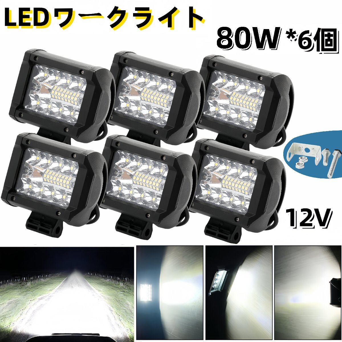 > ワークライト led 作業灯 フォグランプ ダンプ トラック スポットライト 投光器 12v 80w 6個 補助灯 車幅灯 ジムニー 照明