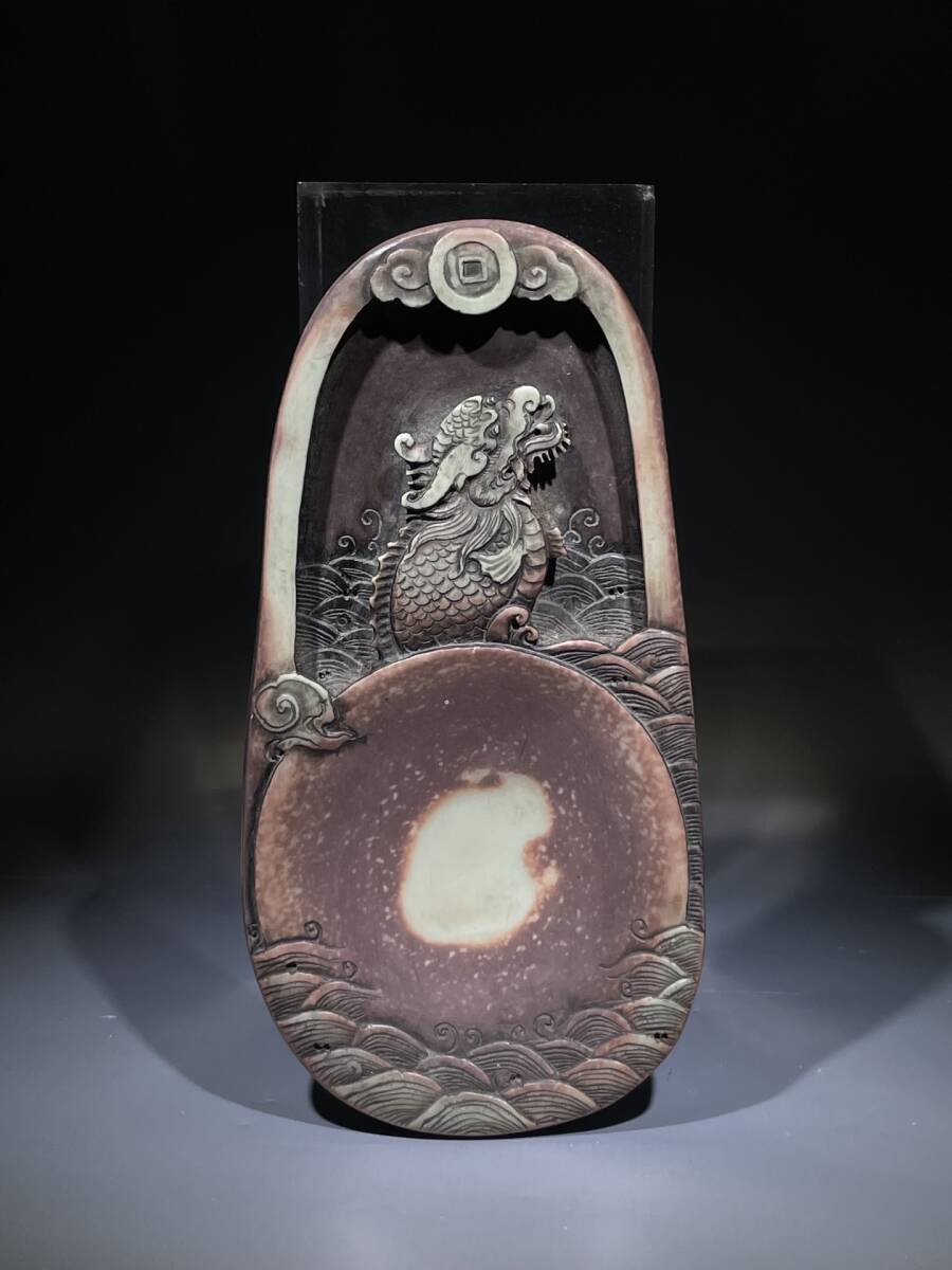 - 珍藏品 紫袍玉 古硯台 帶硯 前程似錦 硯台 宝硯 文房具 文房用品 文房四宝 書道具 時代物 古董品 骨董 旧家蔵出 唐物 中国古玩 古美術品