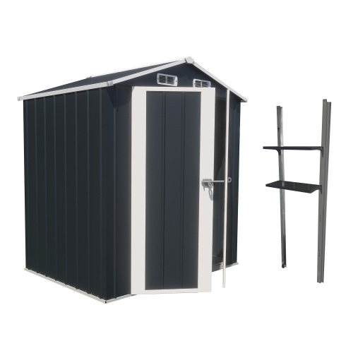 - 【可動棚付き】物置 屋外 スチール 倉庫 床材補強フレーム付き 戸外収納庫 幅173*奥行き107*高193 物置き おしゃれ 【ブルーグレー】
