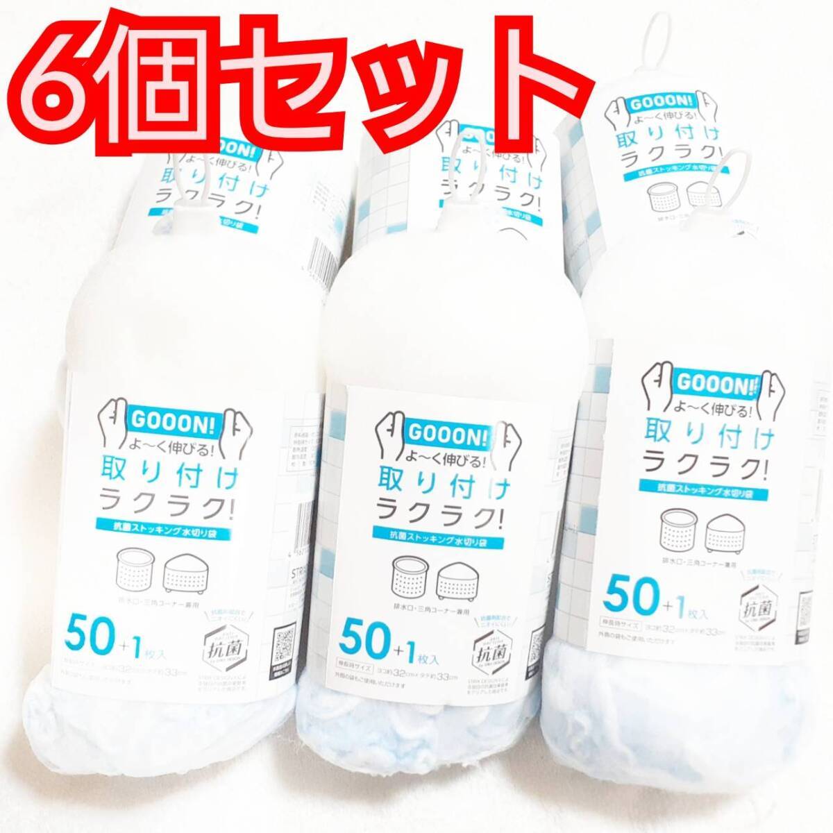 - 送料無料 ぐーんとのびるストッキング水切りネット 50枚入り×6個セット 抗菌 300枚 深型&三角コーナー兼用 約32×33cm 新品 未使用