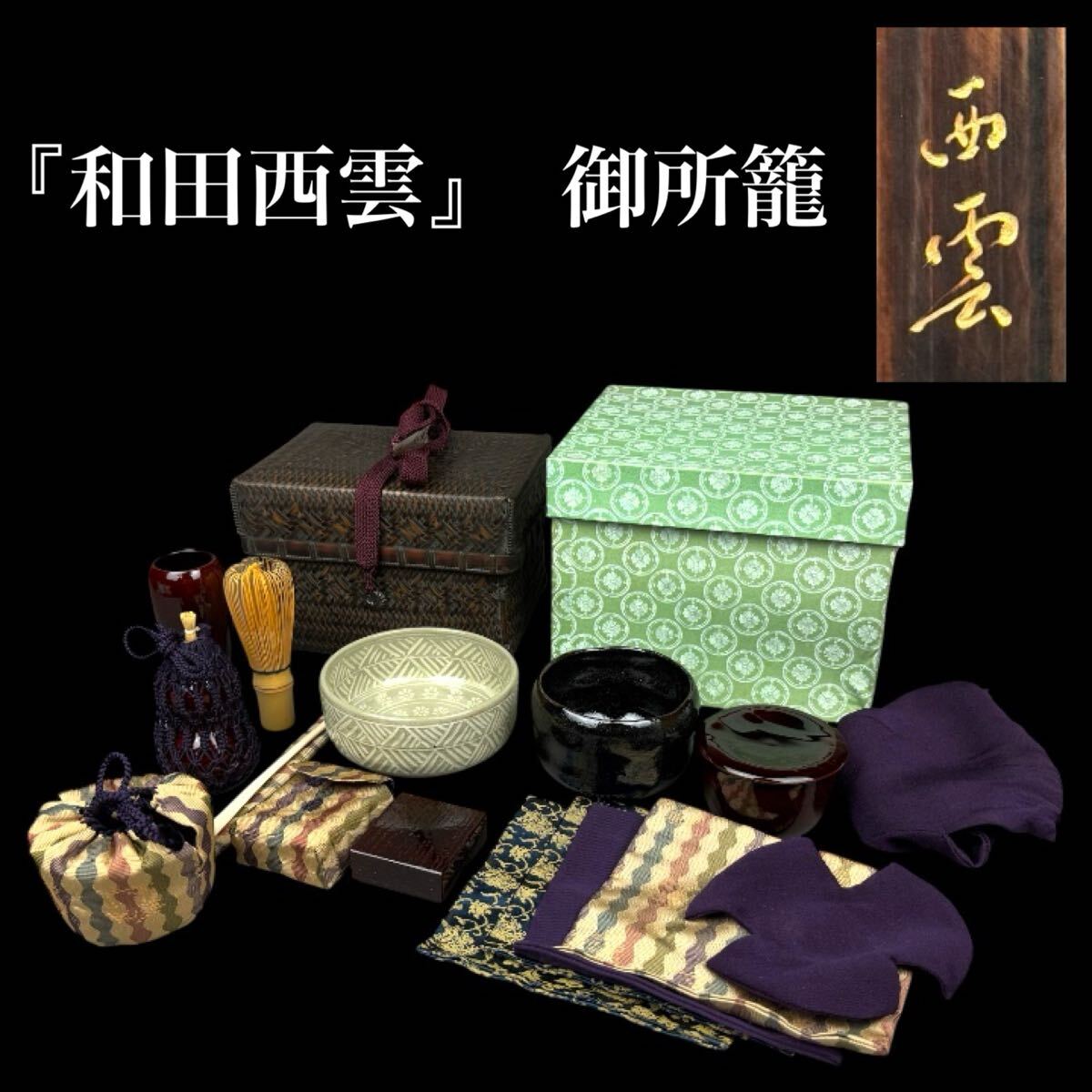 > 茶道具 御所籠 茶箱 和田西雲 茶籠 茶碗 茶杓 棗 仕覆 道具一式 旅茶碗 竹編籠 煎茶道具 黒楽茶碗 高級茶杓