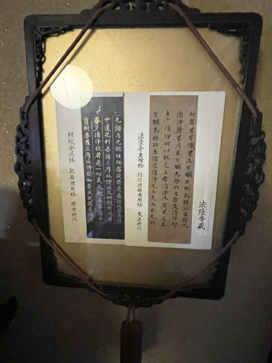 - 【真作】法隆寺蔵 経典 虫喰経 行信僧都発願経 天平時代 紺紙全泥経 般若理趣経 鎌倉時代 仏教 書 金 掛軸 額縁 H57-W43cm 古経 お経 経書