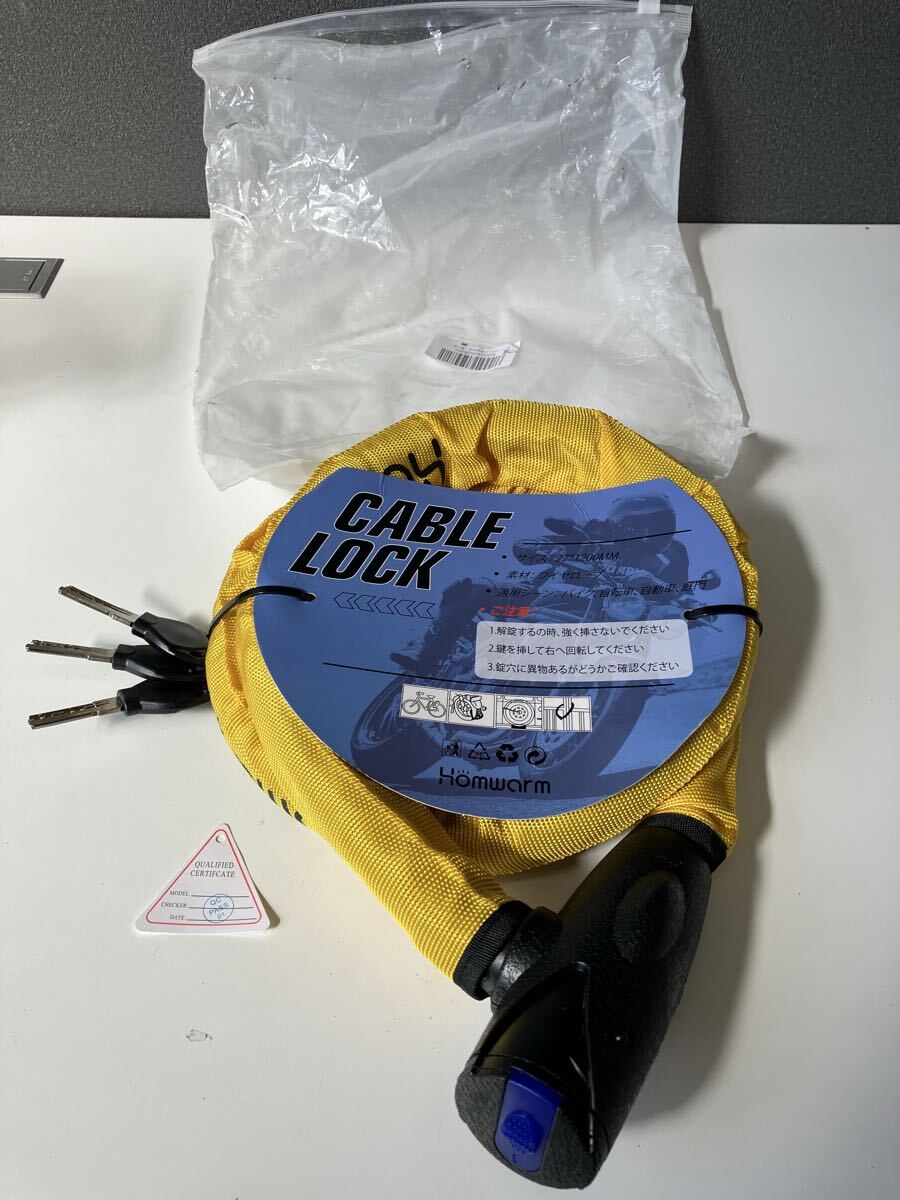 - 0709e2402 Homwarm バイクロック チェーンロック バイク 自転車 ワイヤーロック 盗難防止 鍵3本セット (きいろ)