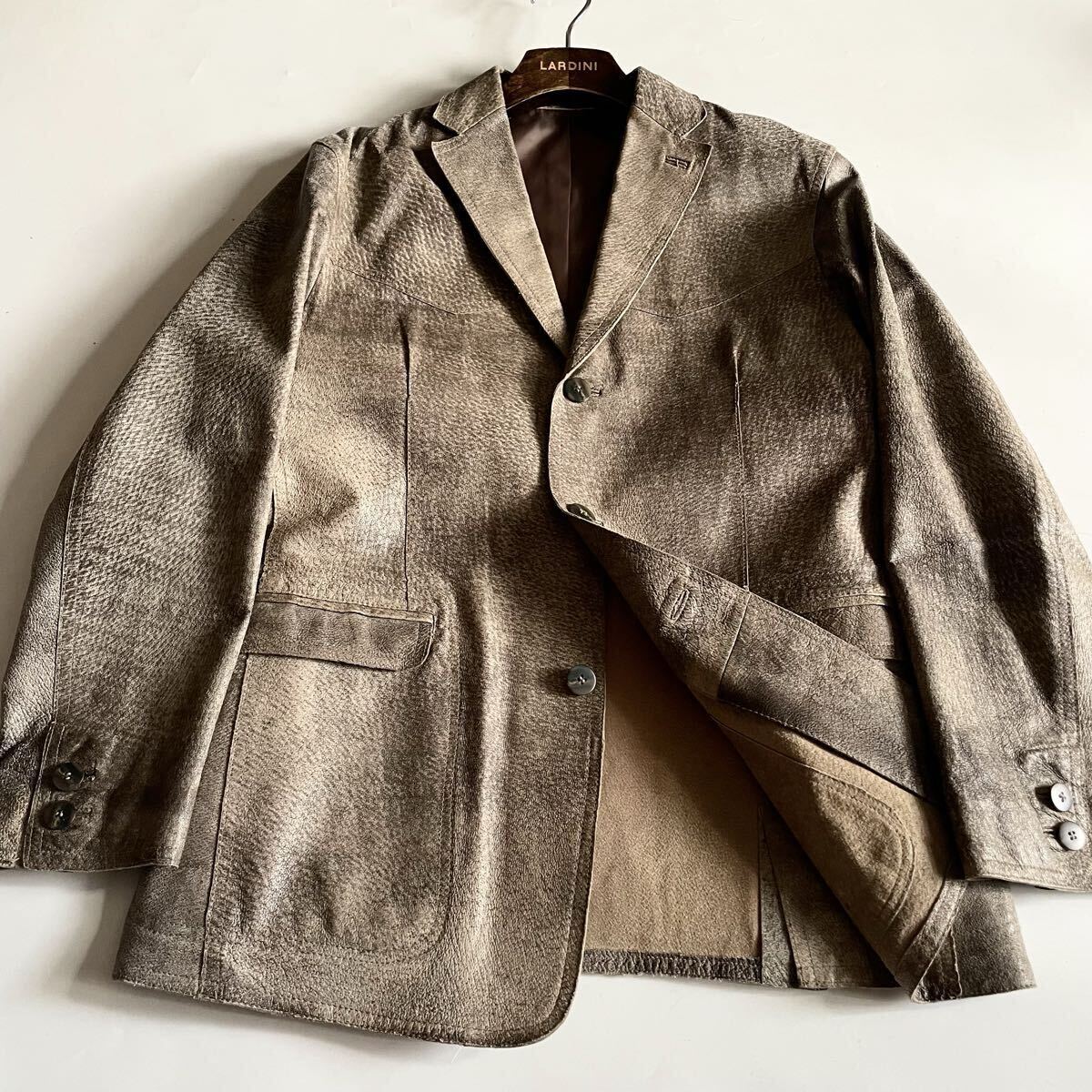 > 【激シブ◎ヴィンテージ加工】希少◇メンズティノラス 本革 リアルレザー テーラードジャケット Large グレージュ 雰囲気◎ MEN‘S TENORAS