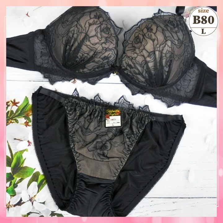 - Zb8017◎新品 ブラショーツセット【B80/L】下着 ランジェリー Wパッド 厚盛 ダークローズ刺繍 黒