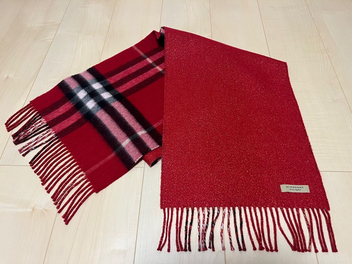 - BURBERRY バーバリー マフラー カシミア80% ポリエステル13% 金属繊維?7% リバーシブル 美品 送料無料!!!