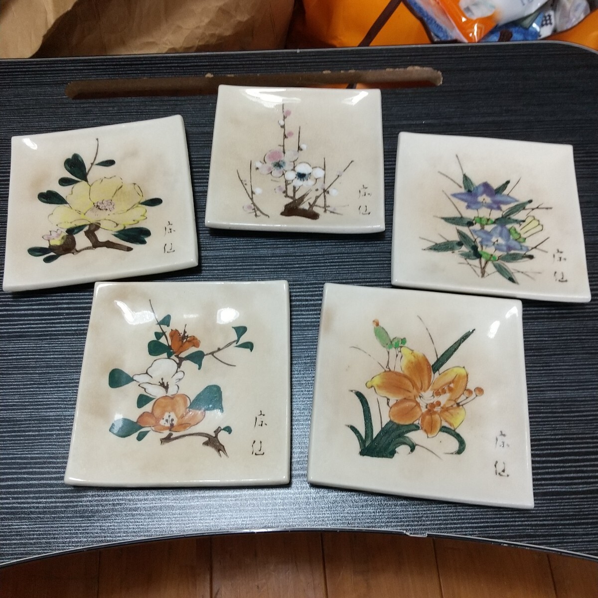 - 昭和の古いレア物瀬戸焼き5枚角皿揃いです。