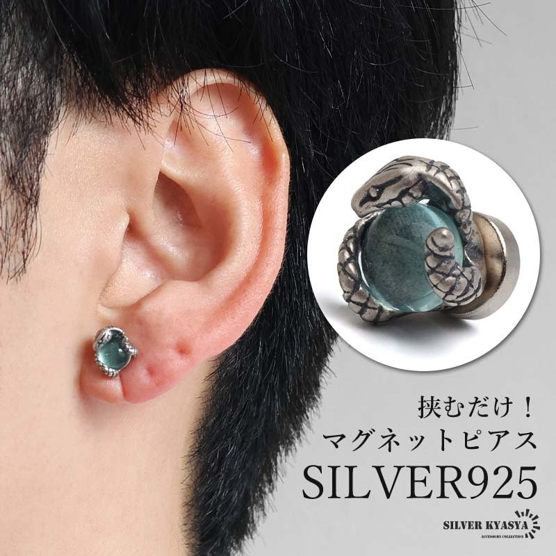 - シルバー925 スネークピアス 蛇 マグネットピアス 磁石 アニマルピアス シルバー アンティーク 片耳1点 メンズ 金アレ対応