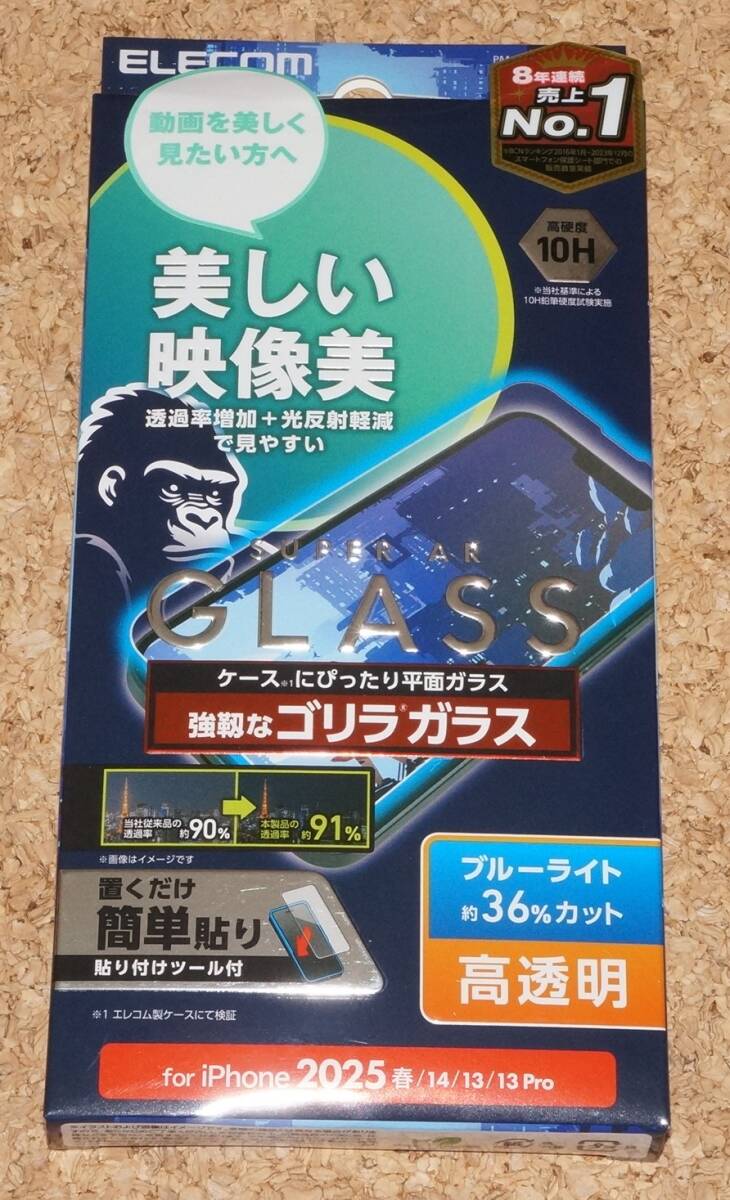 > ★新品★ELECOM iPhone16e/14/13/13Pro ガラスフィルム ゴリラガラス 0.21mm ブルーライトカット 高透明