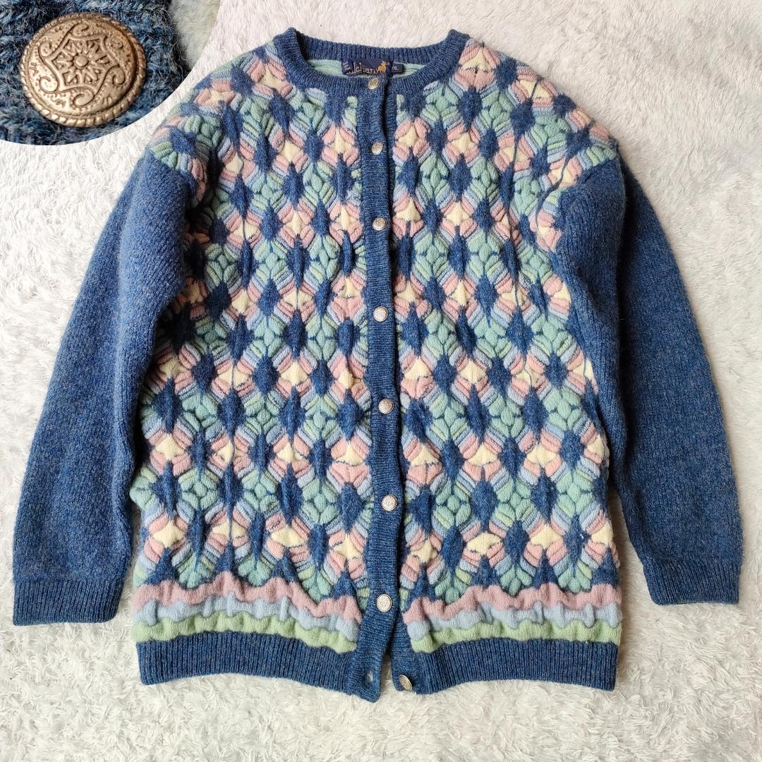 > Tulchan タルチャン 3Dニット セーター メタルボタン L/XL ヴィンテージ ピュアニューウール ウール100% 手洗い可能