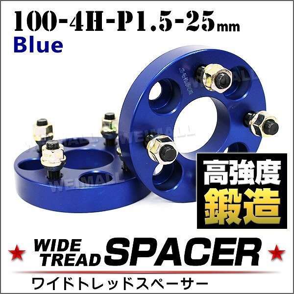 > Durax ワイドトレッドスペーサー 100-4H-P1.5-25mm ナット付 青 8C ホイール スペーサー ワイトレ 4穴 トヨタ 三菱 ホンダ マツダ ダイハツ