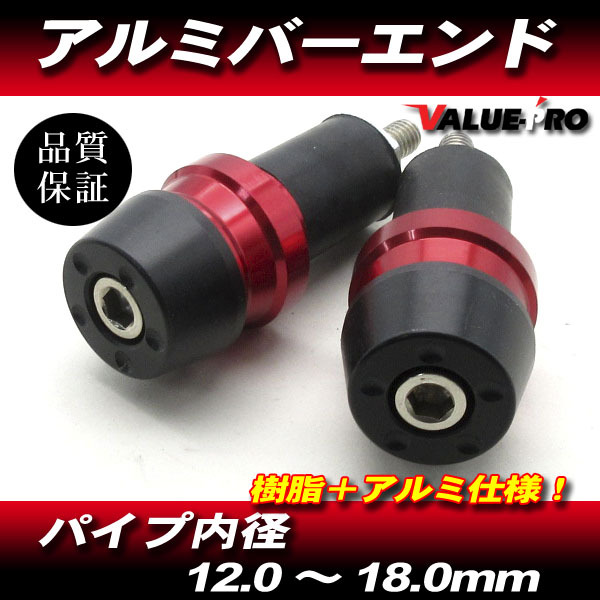 > アルミ+樹脂 バーエンドキャップ 赤 レッド / ハンドル穴径 12mm~18mm対応 GSX400 GSX1200 インパルス イナズマ GSX-R