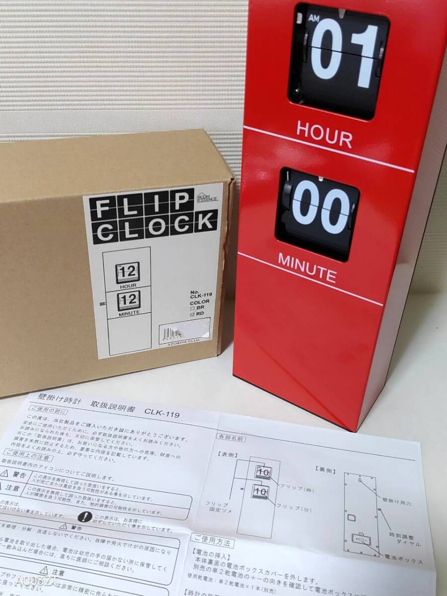 - 東谷 AZUMAYA CLK-119 赤 フリップクロック パタパタ時計 壁掛け 縦長
