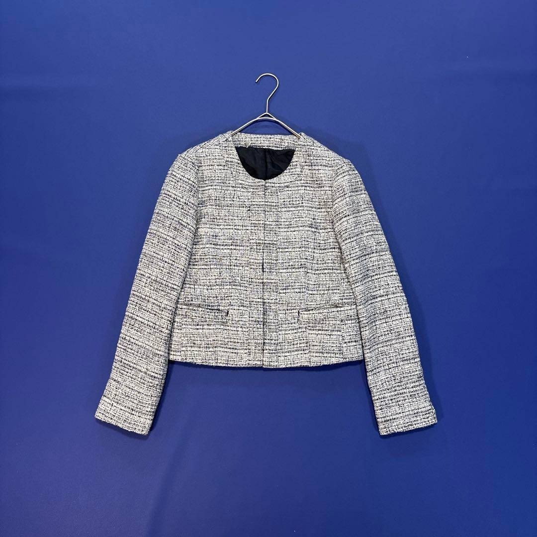 - PLST プラステ ノーカラージャケット ツイード グレー系 S タグなし