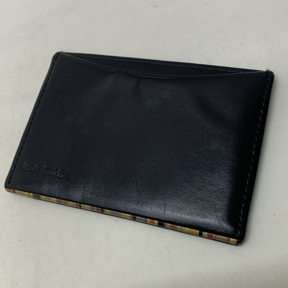 - ポールスミス 名刺入れ パスケース カードケース PSU051 レザー ブラック 黒 マルチストライプ ピンストライプ Paul Smith 紳士用 定期入れ