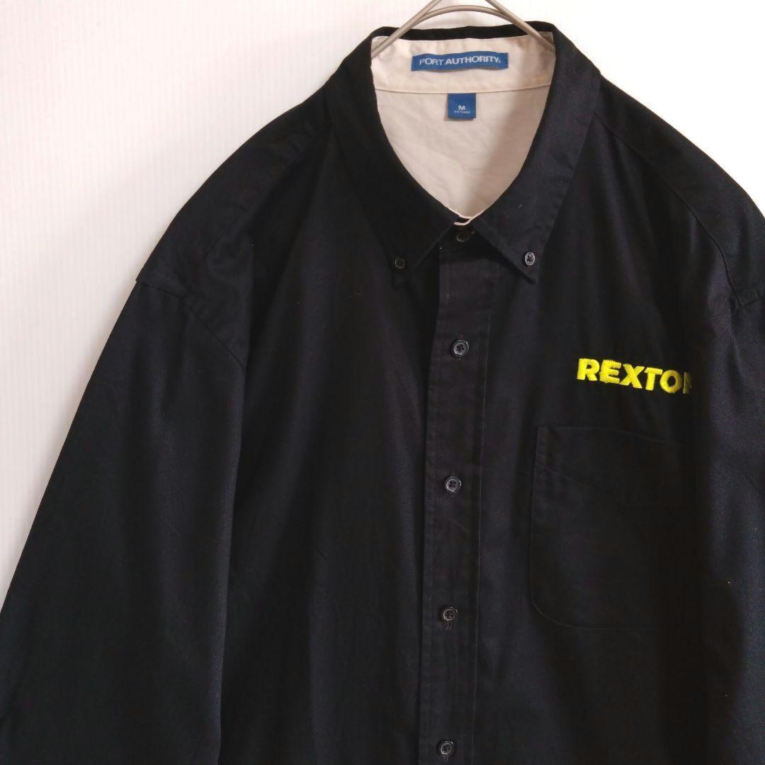 - 2537 PORT AUTHORITY 長袖ワークシャツ M 黒 刺繍 US古着