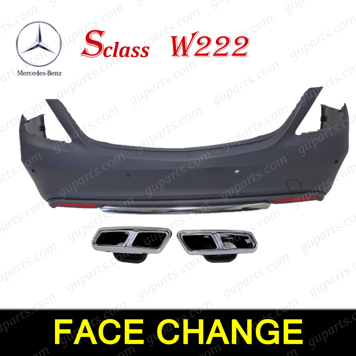 > ベンツ S W222 S300h S400 S400h S550 S600 → S63 S65 AMG リア バンパー マフラー ディフューザー 付 穴有 A2228851625 A2228850225