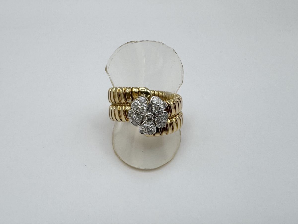 - 【質屋 尾張屋商店 東京】 ☆仕上済☆ 750 ダイヤ レディースリング 花 イタリー フリーサイズ