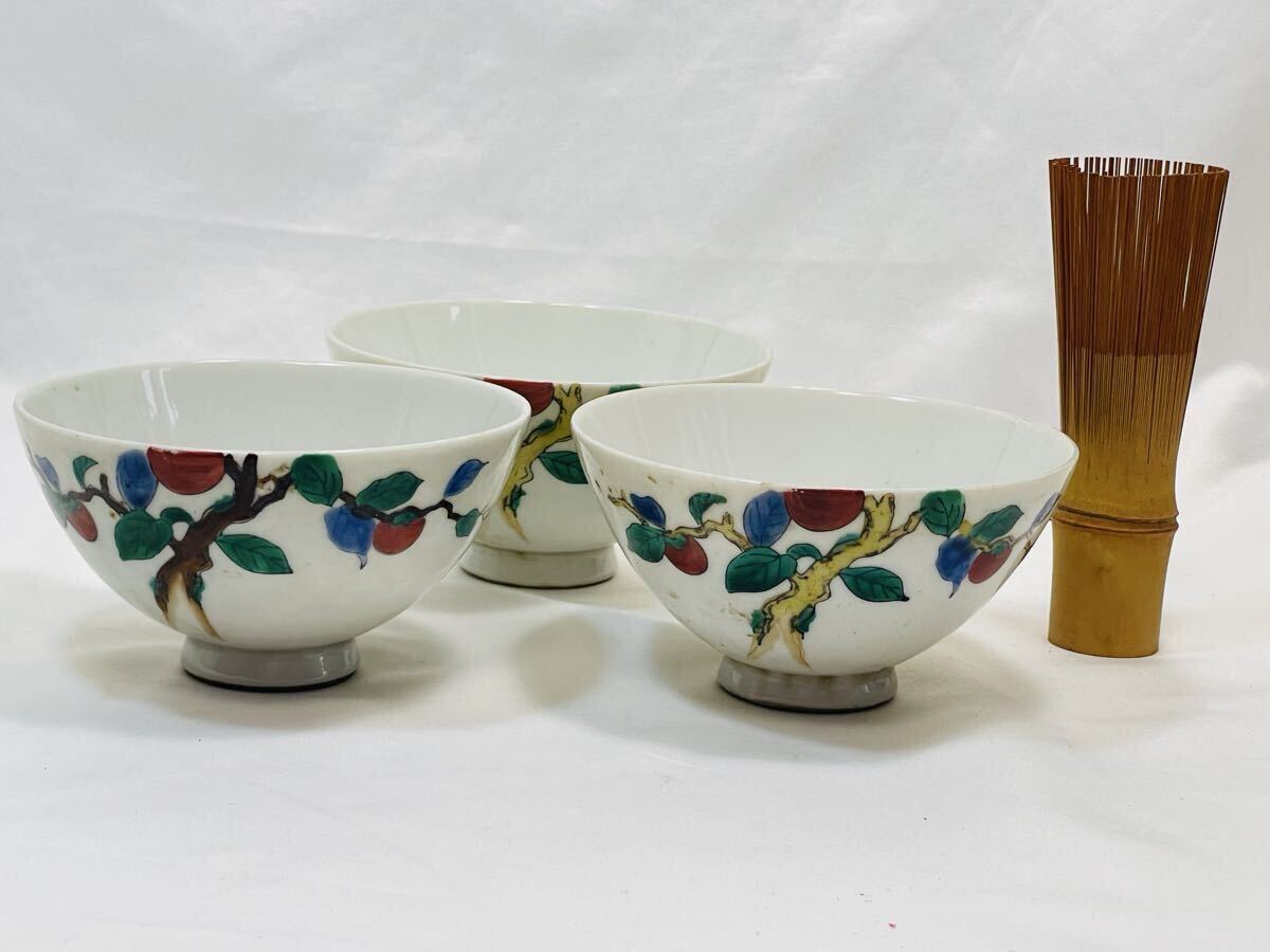 - 【B1-45】日本美術 色繪茶碗 3点セットお碗 茶碗 茶盞 湯呑み 鉢 丼 茶器 茶道具 古食器 賞物 置物 飾り 色絵 陶磁器