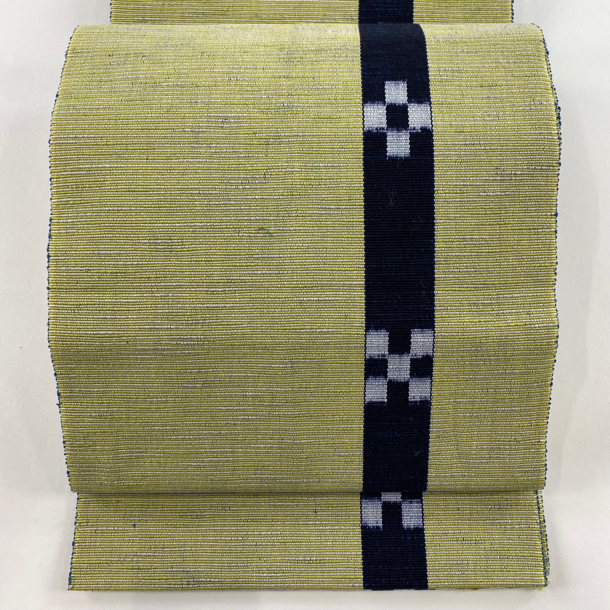 - 名古屋帯 美品 名品 八寸名古屋帯 松葉仕立て 幾何学 灰緑 正絹 【中古】