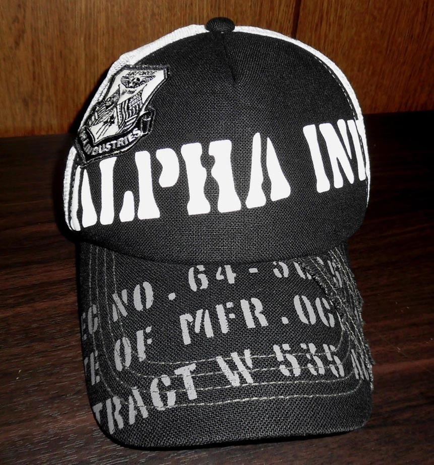 - ALPHA アルファ インダストリーズ バックメッシュ スナップバックキャップ ダメージ加工 BLK-WHT 57-59㎝ USED 美品/アメリカ空軍U.S.A.F.
