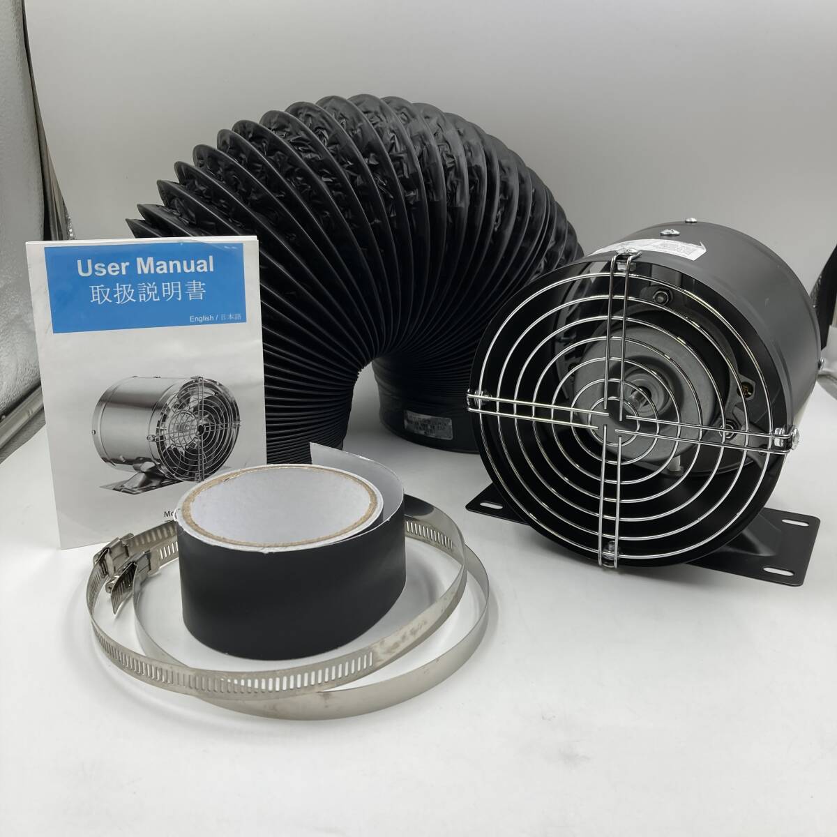 - 【訳あり・羽なし】換気扇 大風量 家庭用工業換気扇 金属製 ON/OFFスイッチ付き ダクト用換気扇 ダクトホース付き/Y31492-F1