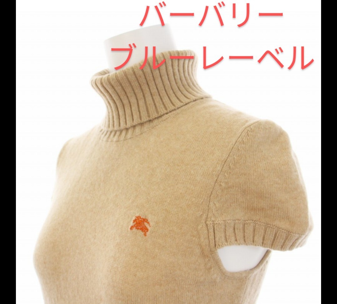 - 送料無料★バーバリーブルーレーベル★カシミヤ混ニット★タートルネック★半袖ニット★38M★ベージュニット★ セーターホースマーク