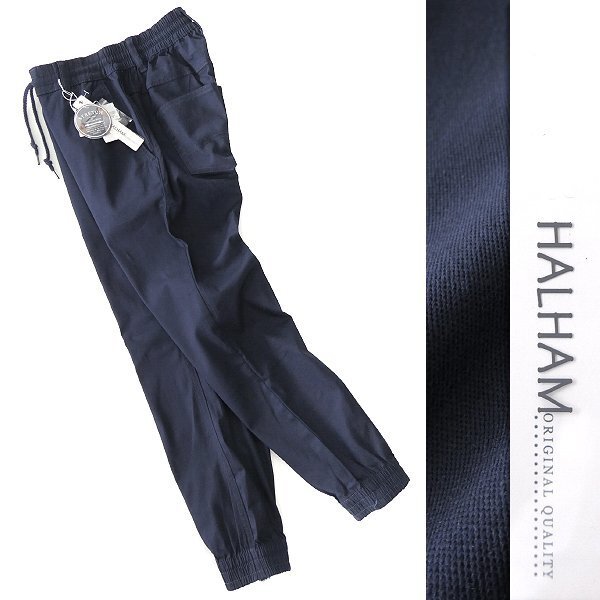 > 新品 HALHAM ハルハム ストレッチ ツイル ジョガー パンツ L 紺 【P30444】 メンズ ジョグ スリム テーパード オールシーズン ネイビー