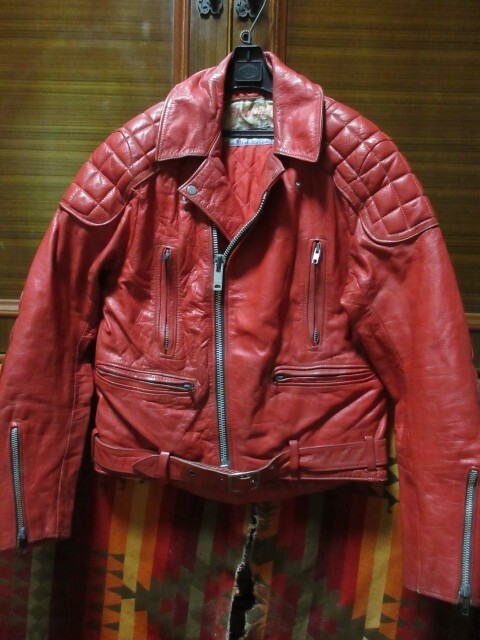 > イギリス製 TT レザー 70s ビンテージ 雰囲気良 赤 UK ロンジャン ライダース ジャケット ■ 英国 PUNK ラロッカ 666 クリームソーダ