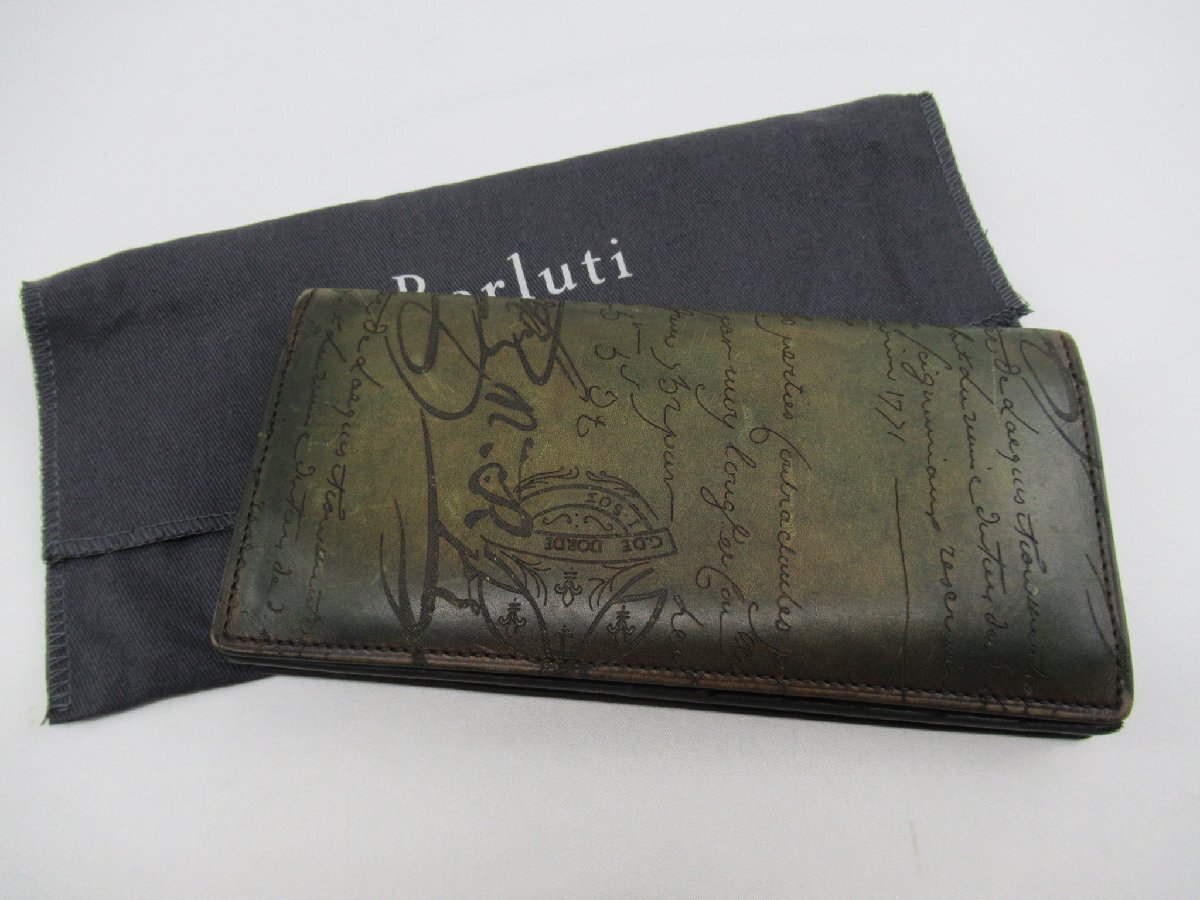 - ★【B送900円】2482 BERLUTI ベルルッティ 財布 二つ折り長財布 ベネチアンレザー カリグラフィー グリーン系 E0128 保存袋付