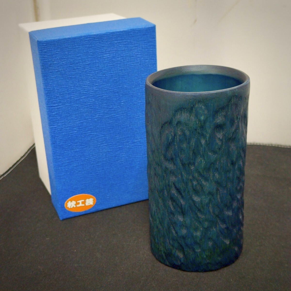 - ☆未使用品☆ 本藍染竹コップ 秋工房 竹製 国産竹 酒器 ビール 茶器 (09257F