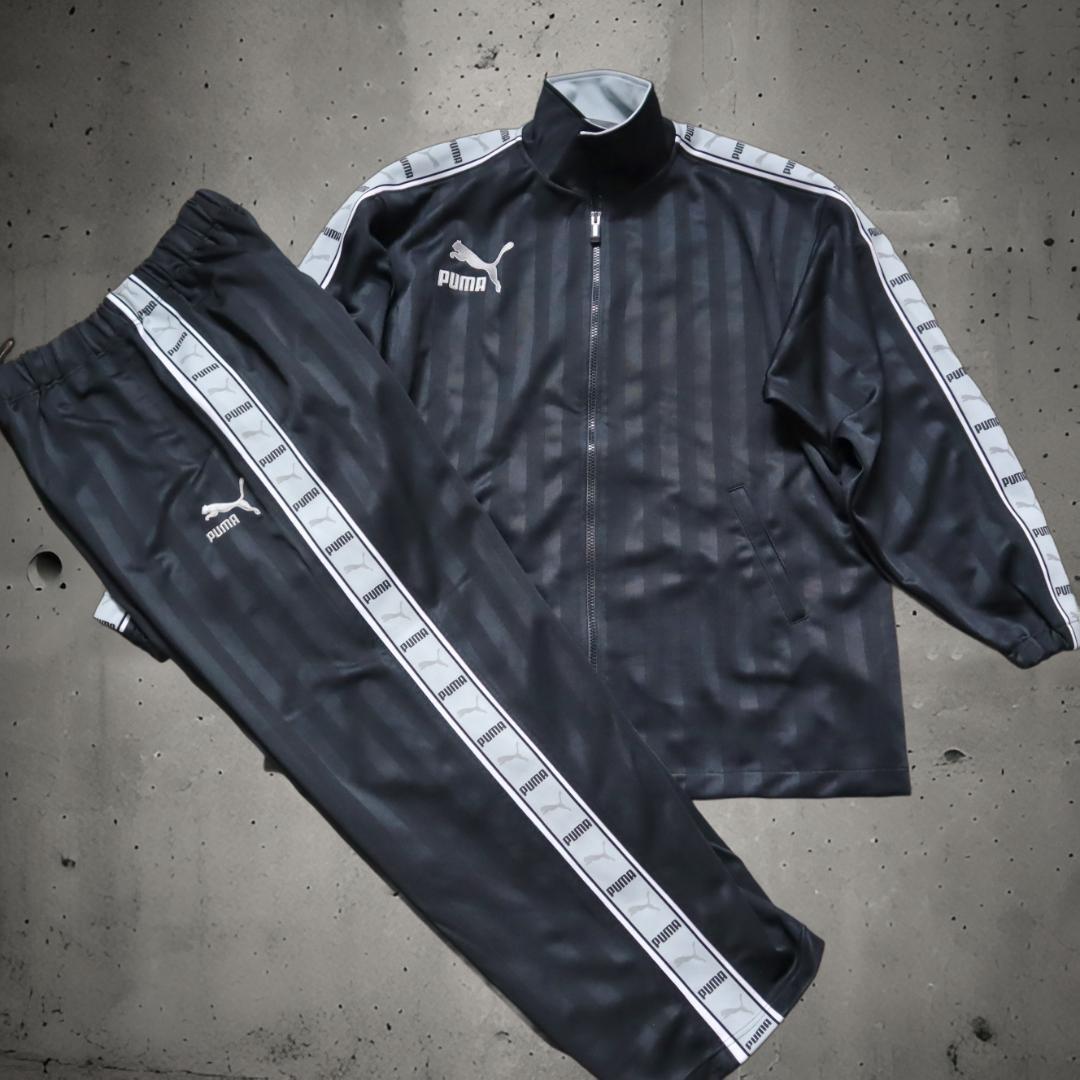 > プーマ/PUMA ジャージ セットアップ 上下 トラックジャケット トラックパンツ バックロゴ ネイビー グレー XL
