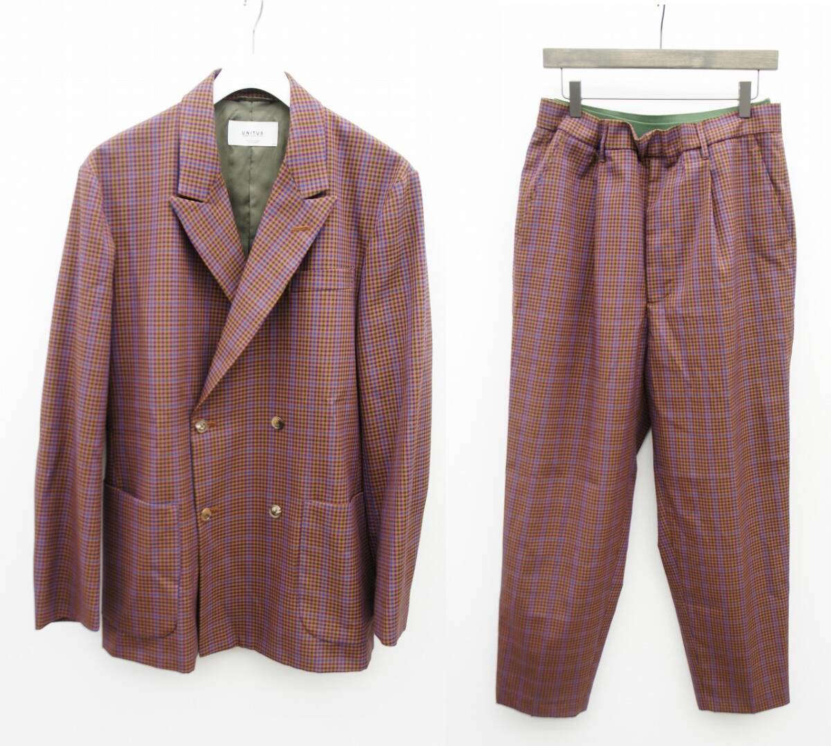 > 美品19AW UNITUS ユナイタス チェック ダブルブレスト ジャケット + パンツ セットアップ スーツ lanificio cangioli カンジョーリ 923P♪