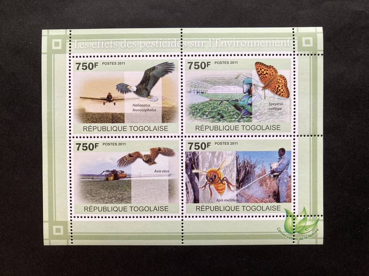 - 外国切手: トーゴ切手 「環境への殺虫剤の影響」(印面:ハクトウワシ ほか) 4種m/s 未使用