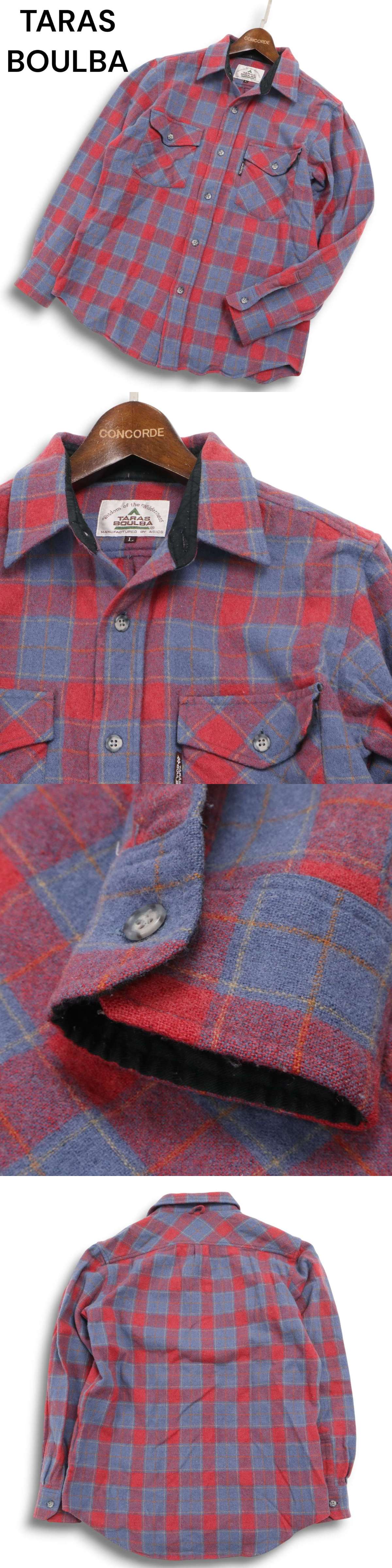 - TARAS BOULBA タラスブルバ 秋冬 ウール★ チェック 長袖 フランネル ワーク シャツ Sz.L メンズ アウトドア 日本製
