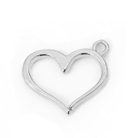 - アクセサリーチャーム 5個パック ハート型シルバー16mmx 13mm メタルデザインチャーム