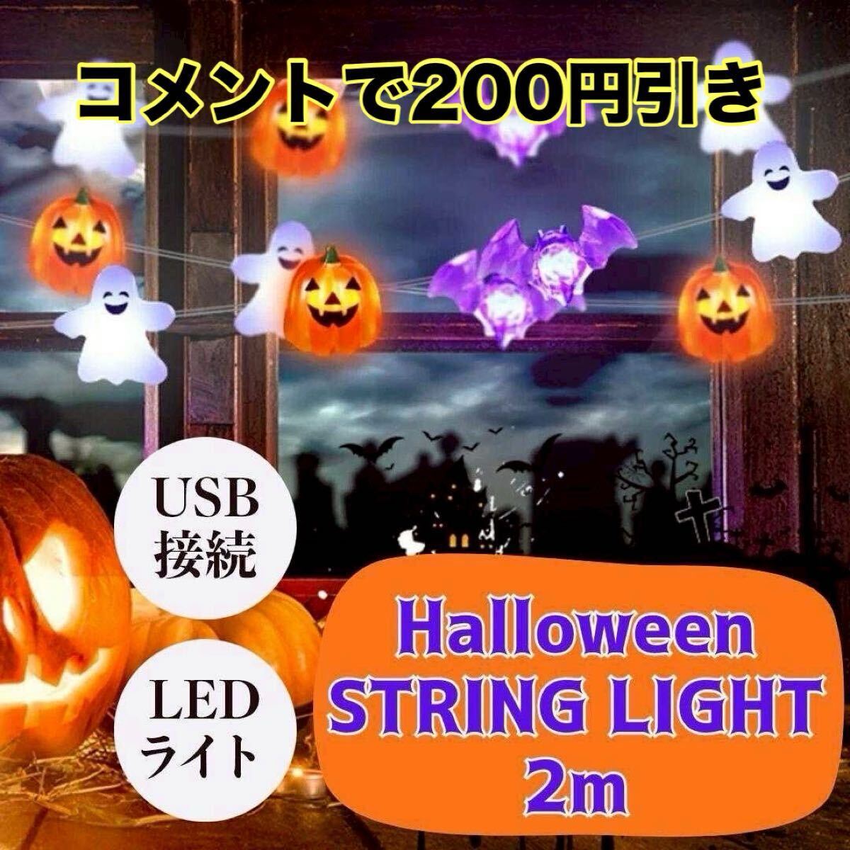 - ゴースト カボチャ コウモリ LED 2m 20LED USB ハロウィン 電飾