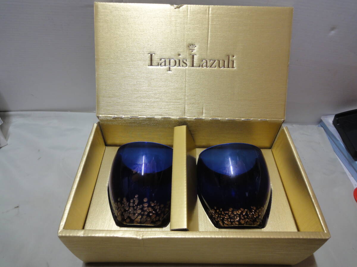 - 【Amulut ラビスラズリ ペアカップ 高さ約 9cm 径約 8cm きれいな青色グラス】未使用品