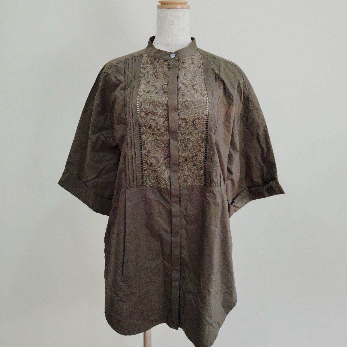 - 198/F/JEANASIS レディース ブラウス 5分袖 ゆったり カーキ