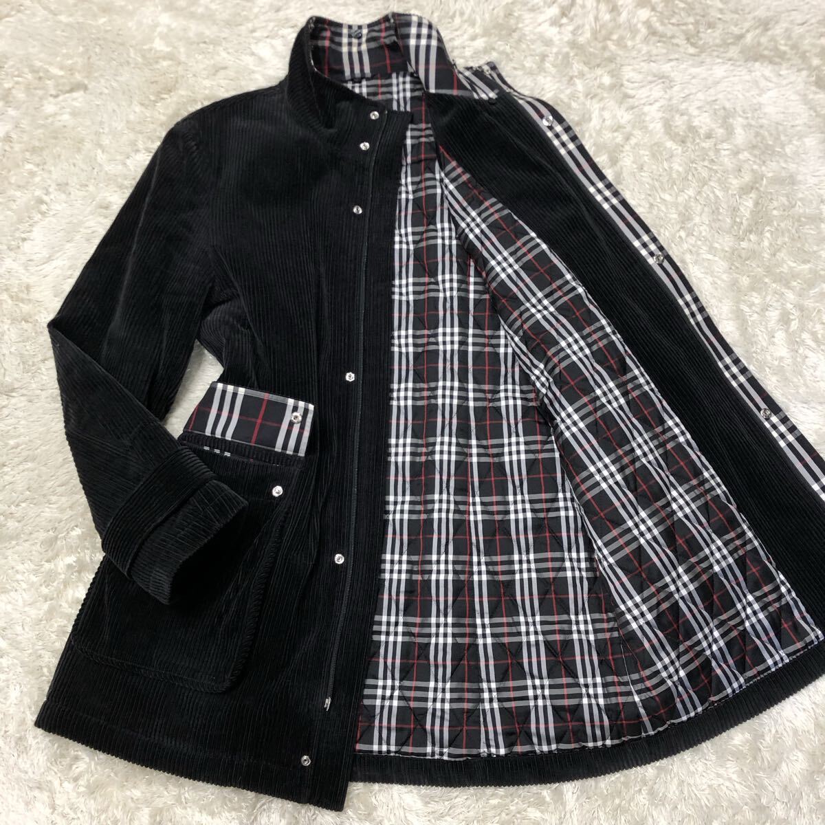 - 希少L!バーバリーブラックレーベル【圧巻のノバチェック】BURBERRY BLACK LABEL ベロア コーデュロイ コート キルティング裏地 中綿 高級