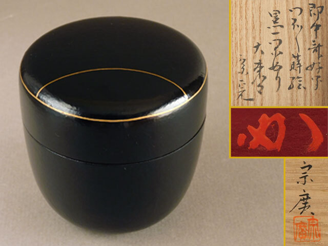 - 表千家 堀内 宗完 即中斎好写 つぼつぼ蒔絵 黒 一閑ぬり 大棗 蒔絵師 道場 宗廣