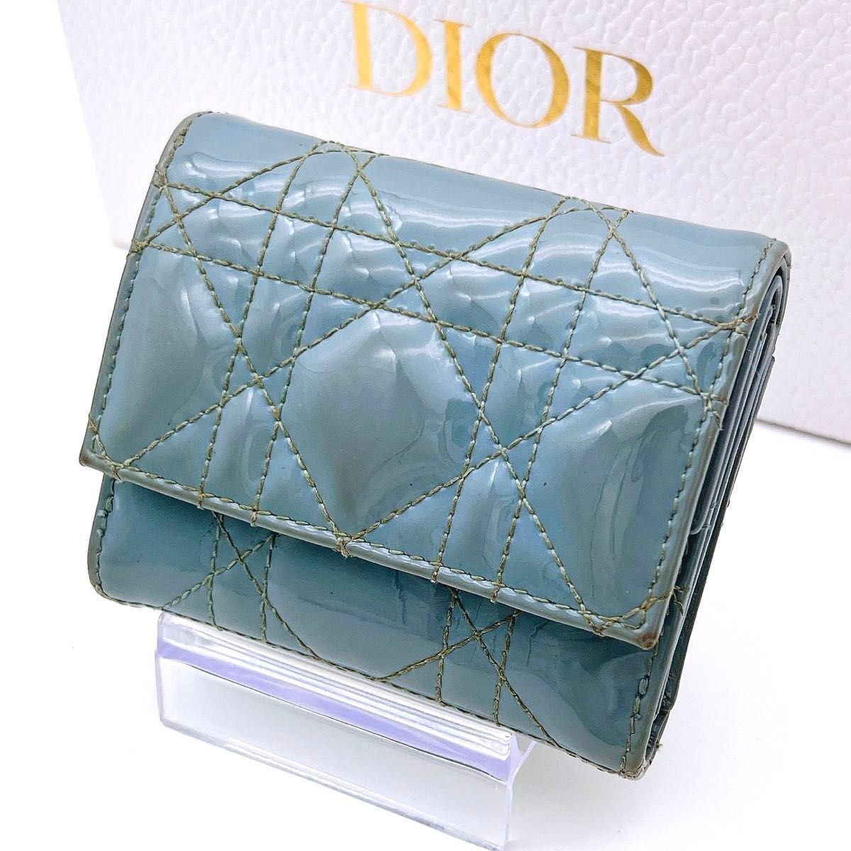 - Christian Dior クリスチャンディオール レディディオール カナージュ ロータスウォレット パテント ライトブルー 三つ折り財布 A550