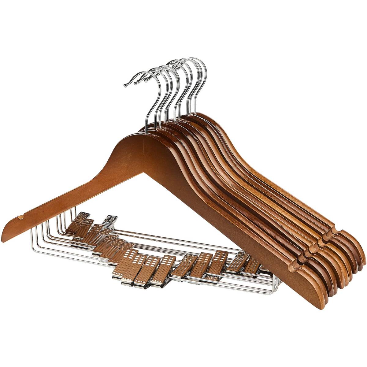 - (茶色 天然高級木 手作 コート用 ジャケット 10) スーツ 10本セット クリップ付きハンガー 夢の家木製スーツハンガー